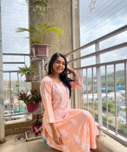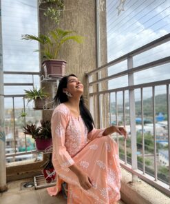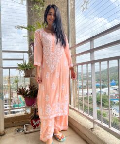 Beautiful 2 pieces chikankari set, it is embroidered on modal cotton soft dyeable fabric. It’s beautified with pure handwork chikankari. Further dyed in pretty shade.